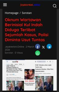 MAKASSAR -detikpk- (25/3/2026) Dugaan pelanggaran kode etik jurnalistik dan pencemaran nama baik oleh JejakTerkini.online telah dilaporkan ke Dewan Pers dan Polda Sulawesi Selatan.