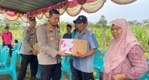 Dikesempatan itu pula, Kapolres Gorontalo menyerahkan paket bingkisan bahan makanan pokok kepada masyarakat atau kelompok tani setempat, sebagai bentuk kepedulian sesama.