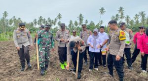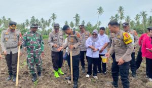 “untuk penanaman bibit ini, selanjutnya akan dilakukan pemeliharaan dan mudah-mudahan sampai pada tahap panen nanti tidak mengalami hambatan serta hasilnya sesuai apa yang diharapkan bersama” tambah Kapolres.