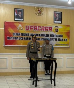 Adapun jabatan Kapolsek Mootilango yaitu dari Ipda Uco Harun, diserahkan kepada Ipda Zulkifly M. Adam, SH., yang sebelumnya menjabat sebagai Kanit Turjawali Sat Lantas Polres Gorontalo.