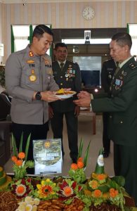 Moment HUT TNI Ke-80, Kapolres Gorontalo, AKBP Ki Ide Bagus., S.I.K Beri Tumpeng, Datangi Kodim 1315 Kabupaten Gorontalo.