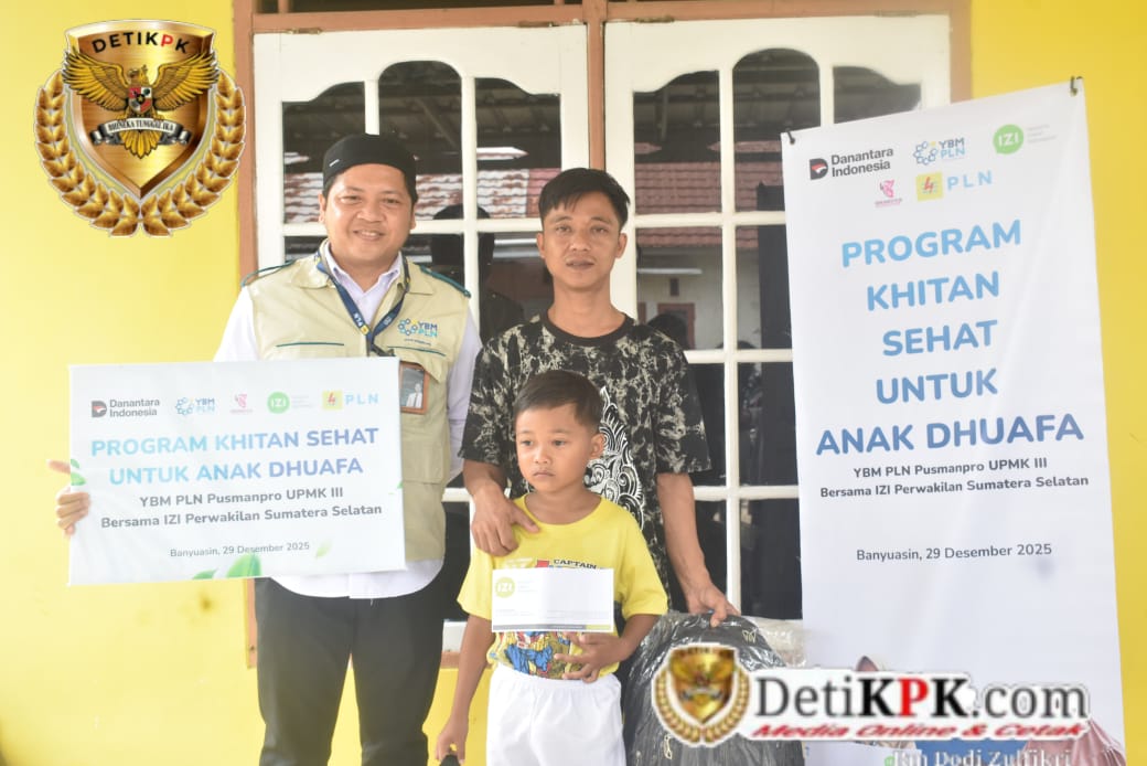 Banyuasin, Detikpk.com. (29/12/2025) – YBM PLN Pusmanpro UP MK III berkolaborasi dengan Inisiatif Zakat Indonesia (IZI) Perwakilan Sumatera Selatan kembali menyelenggarakan program khitan sehat bagi anak-anak dhuafa di Desa Talang Buluh, Kec. Talang Kelapa, Kab. Banyuasin. Sebanyak 30 anak sebagai penerima manfaat.