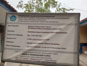 Lebak Banten detikpk com – Pelaksanaan program Revitalisasi pada Sekolah Menengah Pertama Negri 5 Rangkasbitung, Jalan Raya Cikande, Desa Mekarsari Kecamatan Rangkasbitun Kabupaten Lebak