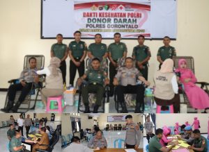 “kegiatan yang dilaksanakan pada hari ini, bersama-sama dengan pengurus Bhayangkari, serta dari TNI Kodim 1315 Kabupaten Gorontalo, sebagai bentuk kepedulian sosial dibidang kesehatan, sekaligus memenuhi ketersediaan stok darah di UTD Rumah Sakit MM Dunda Limboto yang nantinya akan berikan kepada masyarakat yang membutuhkan donor darah.” Ucap Waka Polres.
