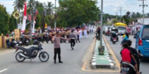 “pada kegiatan pengamanan ini, kami lakukan pengawalan, pengaturan arus lalu lintas, serta menempatkan personil di titik-titik rawan ataupun persimpangan disepajang jalur yang dilalui oleh perserta Lomba” ucap Kapolsek Tibawa Iptu Maryono Baderan saat dikonfirmasi.