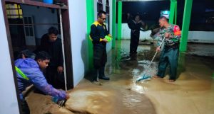 Dilokasi tersebut, Personil Samapta bersama Unsur TNI dari Koramil dan BPBD membantu memindahkan barang-barang warga yang terdampak banjir, membersihkan lumpur yang terjebak di rumah warga dan tempat ibadah (Masjid), serta menyingkirkan tumpukan sampah yang terbawa banjir menutupi ruas jalan.