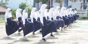 Puluhan siswa-siswi SMPN 4 Satap Telaga Biru antusias mengikuti pelatihan yang dipimpin langsung oleh personel Satgas TMMD. Program ini bertujuan utama untuk menanamkan nilai-nilai disiplin, mental kejuangan, dan rasa cinta tanah air sejak usia dini.