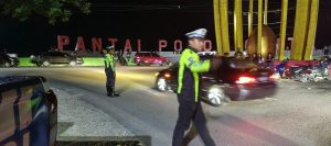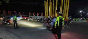 Satlantas Polres Pohuwato Gelar Patroli dan Pengaturan Lalu Lintas Malam Hari di Simpang Tiga Pantai Pohon Cinta
