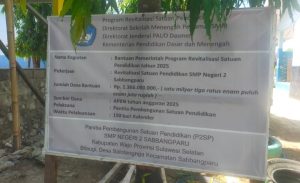 WAJO ,detikpk-Kepala UPTD SMP Negeri 2 Sabbangparu, Drs. Arsyad, mengungkapkan rasa syukurnya atas perhatian pemerintah terhadap pengembangan mutu pendidikan di sekolah yang dipimpinnya. Tahun ini, sekolah tersebut kembali menerima bantuan revitalisasi satuan pendidikan sebesar Rp1.366.000.000 melalui Program Revitalisasi Satuan Pendidikan Tahun 2025 dari Direktorat Sekolah Menengah Pertama, Direktorat Jenderal PAUD, Dikdasmen, Kementerian Pendidikan, Kebudayaan, Riset, dan Teknologi.