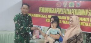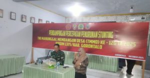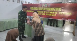 Program TNI Manunggal Membangun Desa (TMMD) ke-126 oleh Kodim 1315/Kabupaten Gorontalo Tahun 2025 tidak hanya fokus pada pembangunan fisik, tetapi juga menguatkan pembangunan sumber daya manusia melalui pendampingan terpadu untuk penurunan stunting.