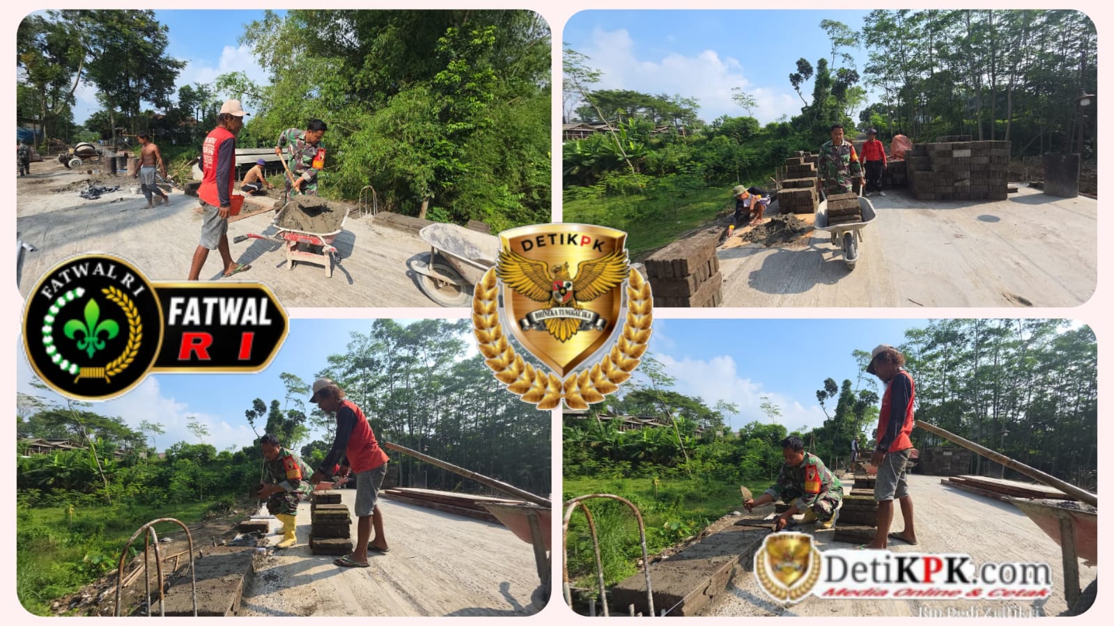 Babinsa Desa Kebonduren Koramil 0808/07 Ponggok Sertu Tri Rosadi melaksanakan kegiatan kerja bakti pemasangan dinding pembatas Jembatan Perintis Garuda di Kali Jomplang Desa Kebonduren Kecamatan Ponggok, Selasa (28/4/2026).